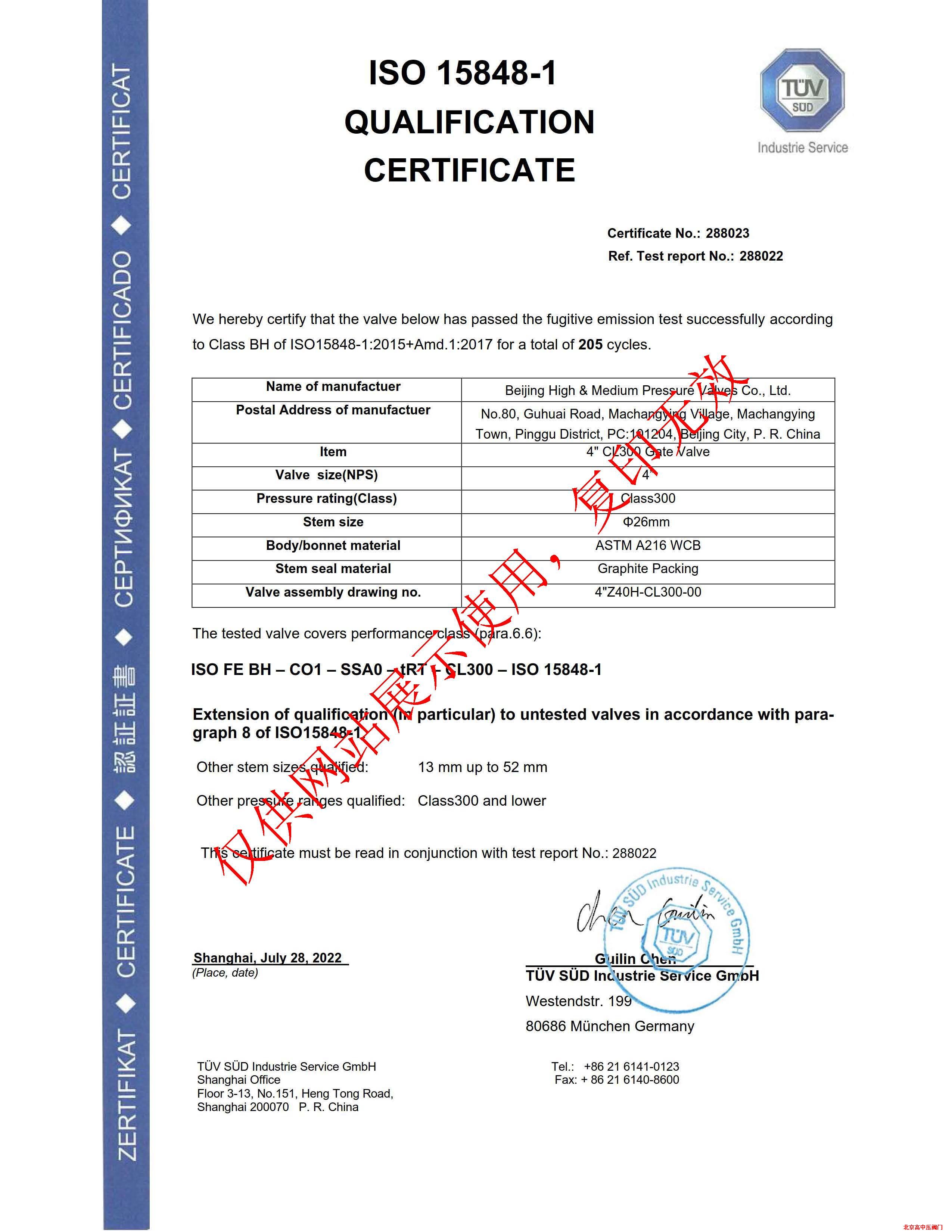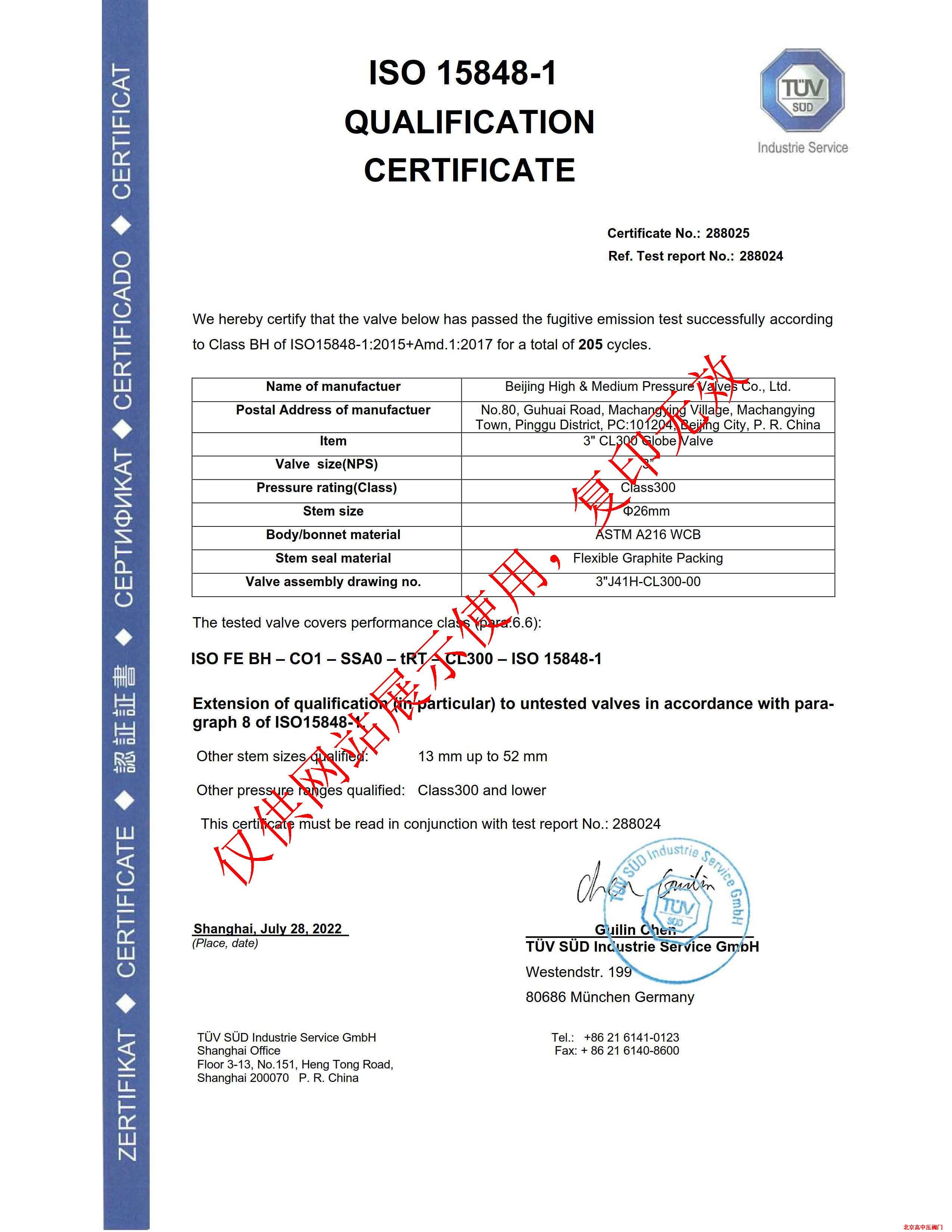 低逸散結構閥門試驗證書ISO 15848-1(頁面1)