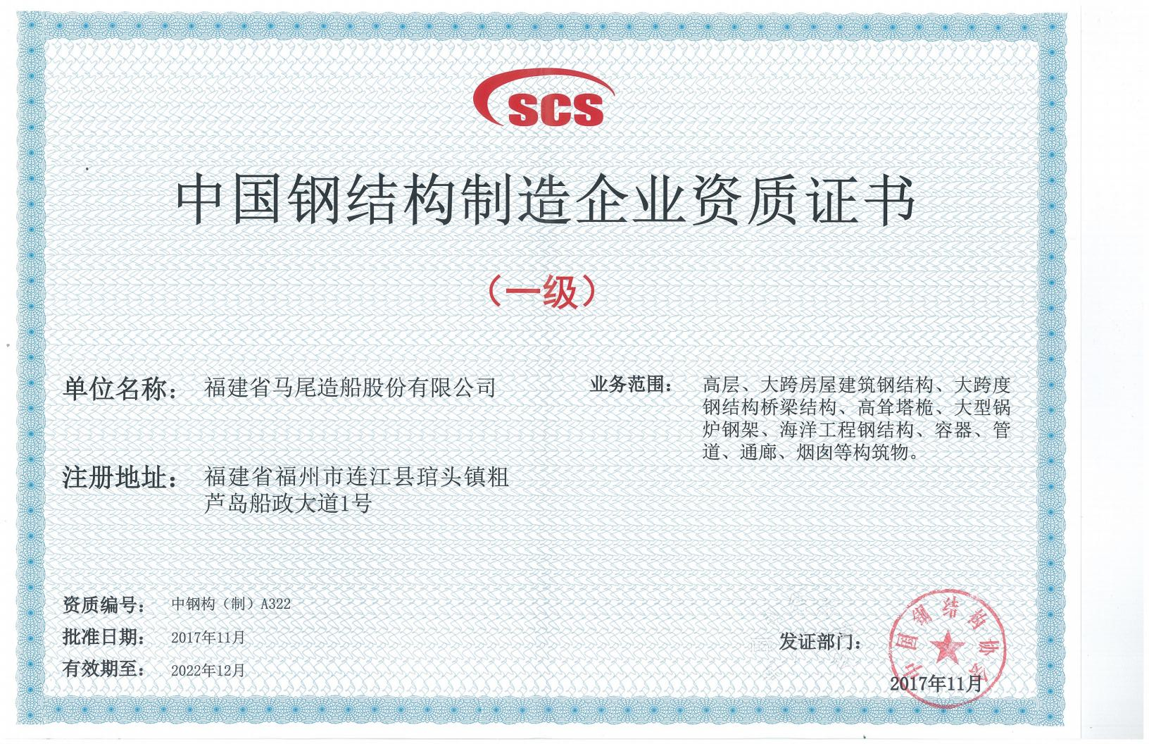 中國鋼結構制造企業資質證書