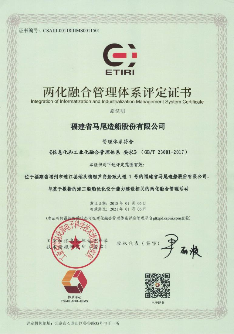 兩化融合管理體系評定證書