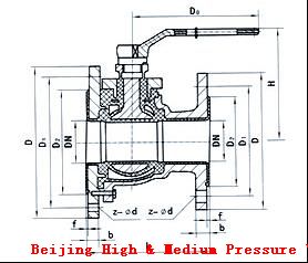 Fluorine feeding ball valve, L value for the enterprise standard, left than the right after a big flanges flanges, D1 and the reaction kettle connection, the molecules to right flange size, the common denominator for left JB78 flange size, match the reaction kettle 50 L-5000 L. |