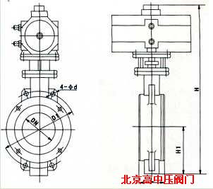 氣動對夾式硬密封蝶閥主要外形連接尺寸