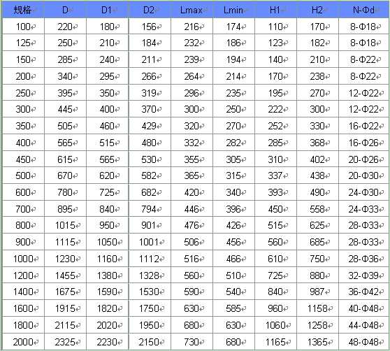 DS341X/F/H-6/10/16C、P、R法蘭式伸縮蝶閥主要外形連接尺寸(單位:mm)