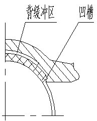 主要密封結構中凹槽和背緩沖區(qū)見圖3,主要是起到緩壓作用。緩壓的作用是怎么形成的呢?PTFE套壓入閥體錐腔時,凹槽和背緩沖區(qū)凹下部位形成了空隙,當旋塞裝入并預緊后,PTFE套受到外力便開始冷流,壓力通過PTFE套傳遞到閥體內(nèi)壁上。冷流后使冷流出PTFE填滿或部分填滿凹下空隙部分,這種填滿過程就是緩壓過程。