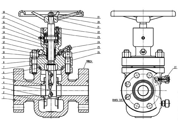 撐開(kāi)式平板閘閥是為油田鉆井采油,閥門(mén)樹(shù)配套用閥而設(shè)計(jì)研制。油田井口每臺(tái)鉆井都需要配套防噴管匯、節(jié)流管匯,二管匯設(shè)備在油田鉆井缺一不可。油田進(jìn)口一臺(tái)平板閥需要八萬(wàn)人民幣,為了給國(guó)家節(jié)省外匯,公司決定進(jìn)行設(shè)計(jì)研制。設(shè)計(jì)采用井控裝置、API6A標(biāo)準(zhǔn),結(jié)構(gòu)參照美國(guó)W-K-M公司結(jié)構(gòu)進(jìn)行設(shè)計(jì)。
